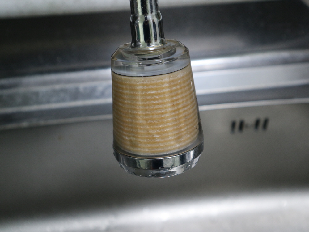 약 2~3개월 정도 사용한 필터의 사진입니다. 갈색으로 변한 필터를 볼 때마다 필터를 안썼다면 계속해서 녹, 중금속 등으로 오염된 물을 마시고 있었겠구나 생각이 듭니다.