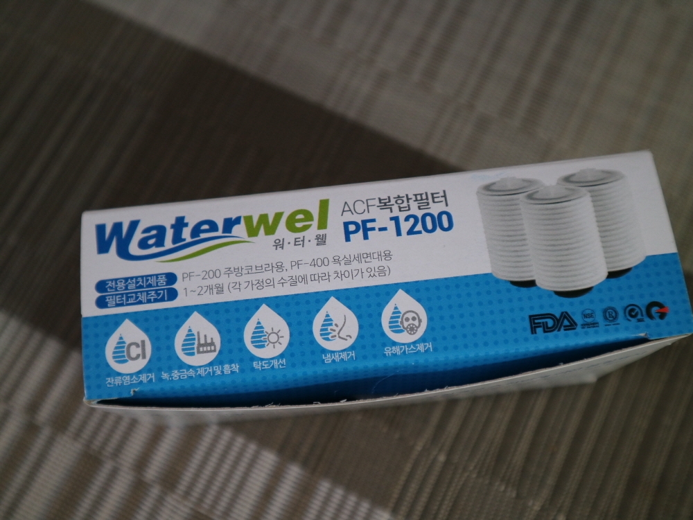 그래서 조금이라도 깨끗한 물로 요리와 설거지를 해보려고 주방 싱크대 수전에 사용할 필터 샤워기를 찾아보다가 워터웰 ACF복합필터를 사용하는 PF-200을 구입했습니다.