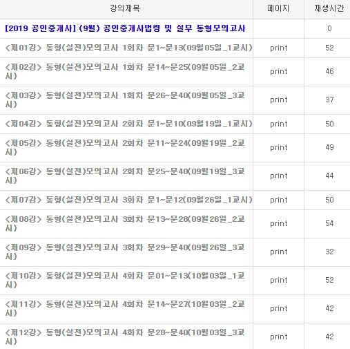 마지막으로 소개할 강의는 장호찬 교수의 공인중개사법 및 실무 강의입니다. 위의 두 교수님의 강의가 2020년 공인중개사 강의라서 현재 진행 중인 반면에, 장호찬 교수님의 강의는 2019년 공인중개사법 강의이기 때문에 마무리 과정까지 전부 올라와있습니다. 기본 이론부터 심화이론, 문제풀이, 동형 모의고사까지 공인중개사법에 관한 강의가 빠짐없이 있습니다.