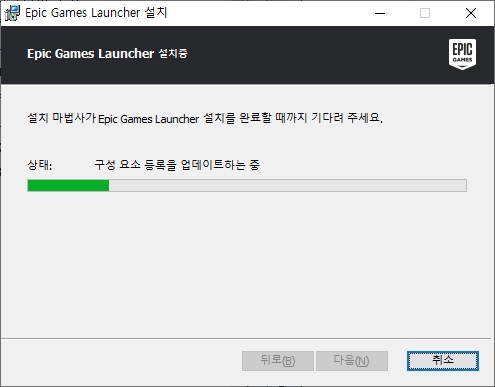 프로그램이 설치되고 각종 업데이트까지 전부 완료되면 에픽게임즈 런처를 실행합니다. 아마 자동으로 실행될 겁니다.
