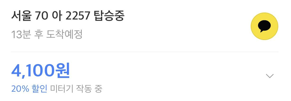 제가 이용했을 때에는 베타서비스 기간 중 할인 이벤트인지 20% 할인된 미터기가 작동중이라는 멘트가 나왔습니다. 그리고 추가로 할인 500원을 더 받았습니다.