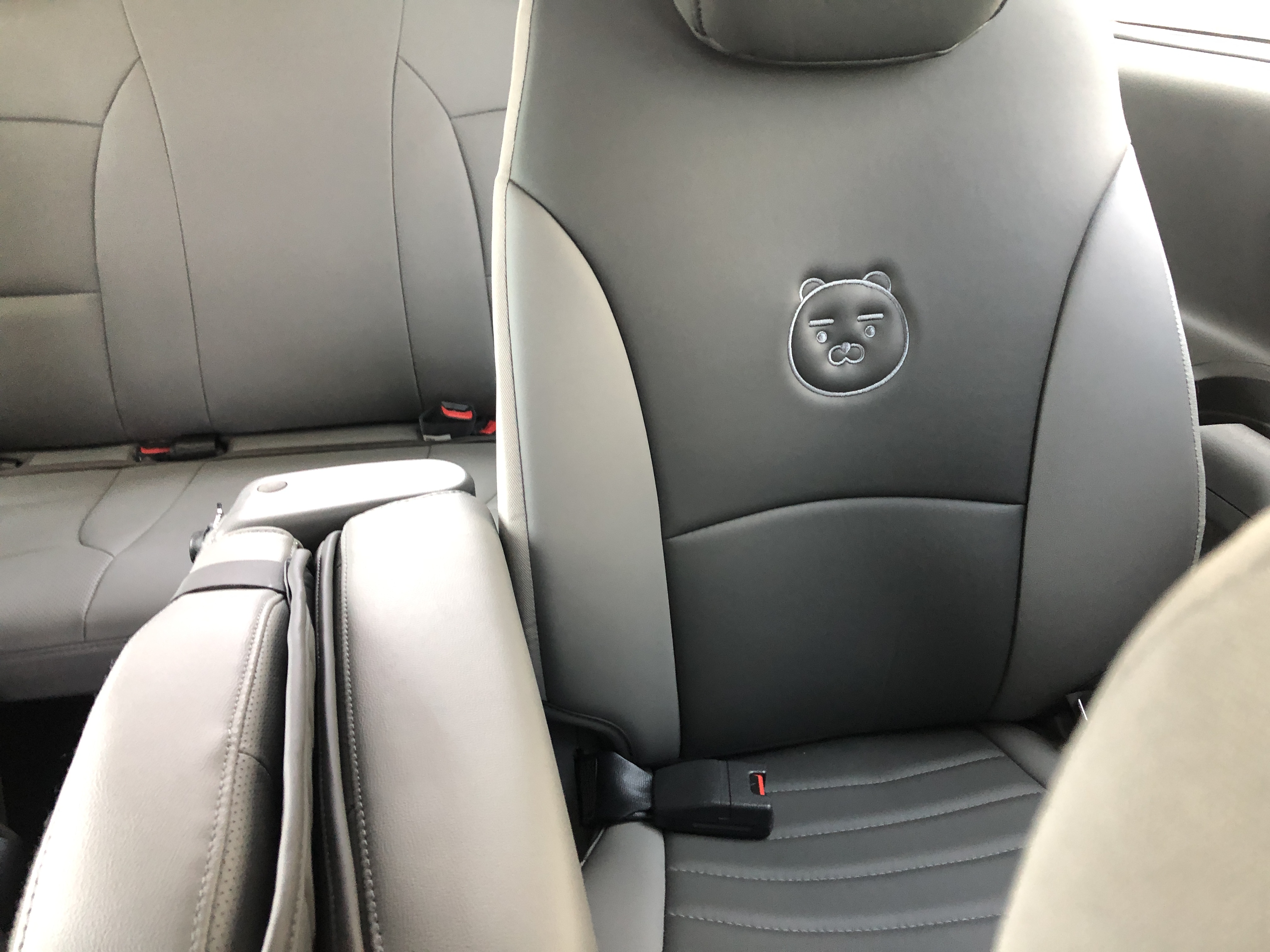 카카오T 벤티라는 이름에 맞게 차량 시트 여기저기에 카카오 캐릭터가 그려져 있습니다.