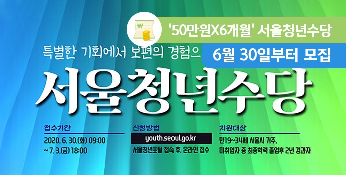 지난 3~4월에 2020년 1차 서울 청년수당 신청이 있었습니다. 신청 기간을 늦게 알았거나 하는 등의 이유로 서울 청년수당을 신청하지 못한 분들이 있었을 텐데요. 이번에 6월 30일부터 2차 서울 청년수당을 신청 받는다고 하니 꼭 놓치지 마시기 바랍니다.