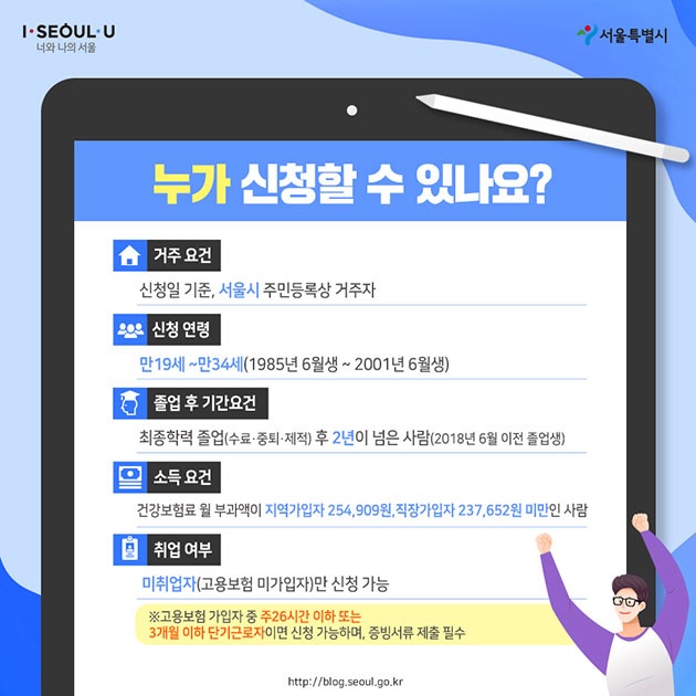 서울특별시 청년수당을 신청하기 위해서는 다음의 자격 요건을 만족하셔야 합니다.