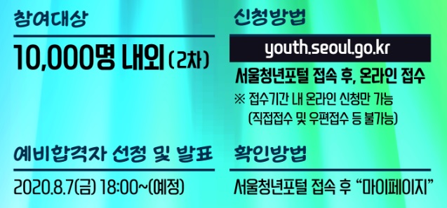 서울 청년수당 사업은 “서울특별시 청년기본조례”에 따라 서울에 거주하는 미취업 청년의 구직 활동과 생활 안정을 지원하기 위해 진행하는 사업입니다. 지난 3~4월에 이미 1차 서울 청년수당을 신청 받았고, 이번에는 2차 서울 청년수당을 신청 받을 예정입니다.