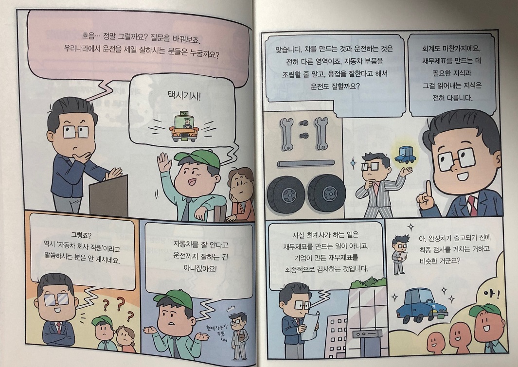 그러나 만화라고 해서 내용이 아주 쉬운 것은 아니다. 만화의 형식을 빌리긴 했으나 강의 내용은 그대로이기 때문에 다른 만화책처럼 술술 읽히지는 않는다. 재무제표의 숫자를 보면서 하나씩 생각해보고 넘어가기 때문에 읽고 넘어가는 데 시간이 좀 걸렸다.