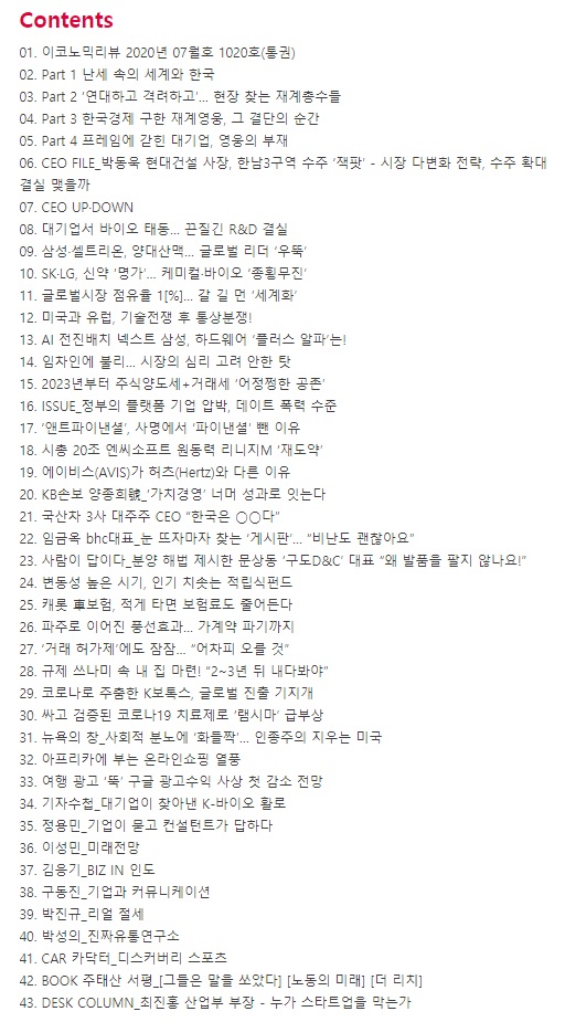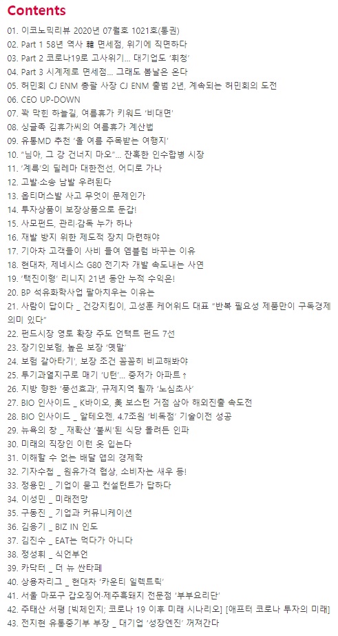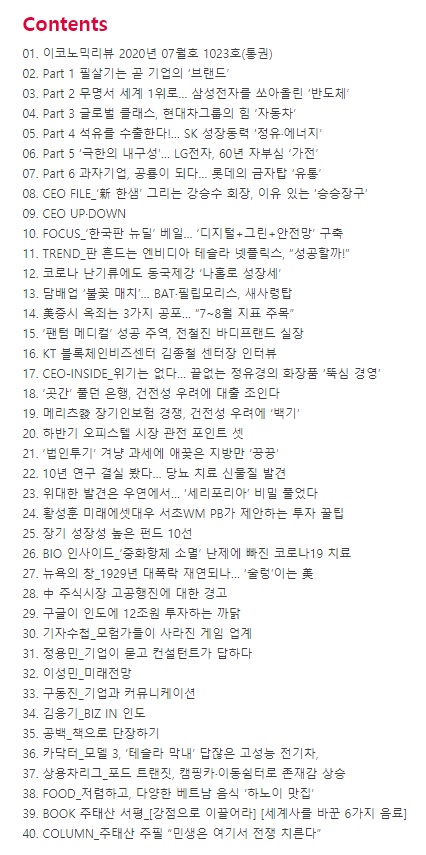 저는 개인적으로 FOCUS, ISSUE, BIZ-INSIDE, INVEST, GLOBAL 파트를 먼저 훑어봅니다. 그리고 그 중에 주식 투자나 미국 배당주와 관련해 참고할만한 내용이 있으면 자세히 읽어봅니다.