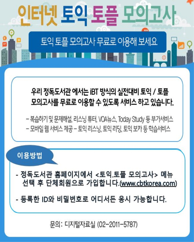 정독도서관의 스마트라이브러리를 활용해 토익, 토플 모의고사를 보는 방법이기 때문이죠.