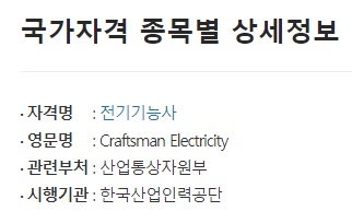 한국산업인력공단이 운영하는 국가 자격증‧시험정보 포털 큐넷에서 전기기능사에 대해 찾아봤습니다.