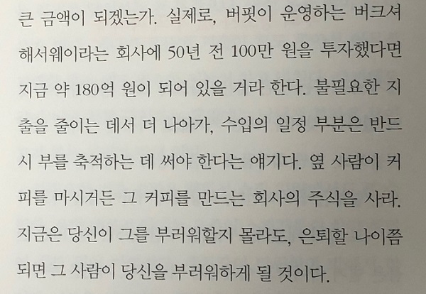 주식 철학을 이야기하는 부분은 너무 많이 들은 이야기라 식상할 수도 있지만, 오히려 기본을 다시 한 번 복습한다고 생각하고 읽었다.