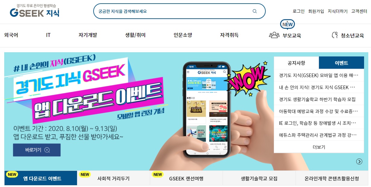 위에서 소개한 강의는 모두 경기도 무료 온라인 평생학습 지식(GSEEK) 사이트에서 수강할 수 있는 강의입니다. 물론 회원가입 없이도 들을 수 있습니다.