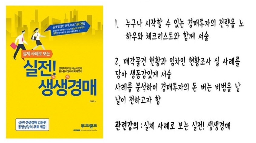 본 강의는 <실제 사례로 보는 실전! 생생경매>를 교재로 활용하고 있습니다.