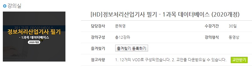 정보처리산업기사 필기, 실기 2020 무료 강의 듣는 법