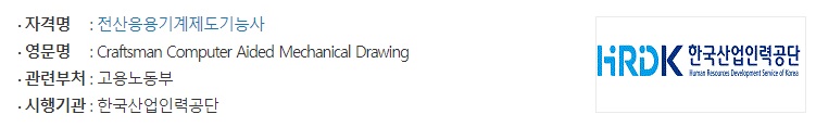 전산응용기계제도 기능사 자격증을 한국산업인력공단 Q-Net 홈페이지에서 검색했습니다. 이 자격증은 산업현장에서 필요한 전산응용 기계제도 분야의 기능 인력을 양성하기 위해 제정한 자격입니다.