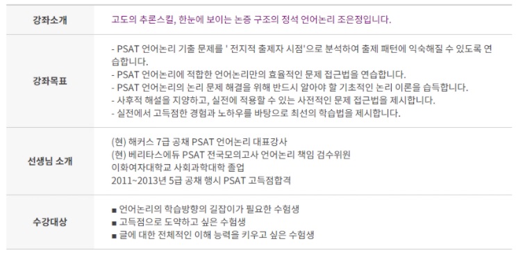 다음은 <조은정 언어논리 입문강좌>의 강좌목표와 수강대상입니다.