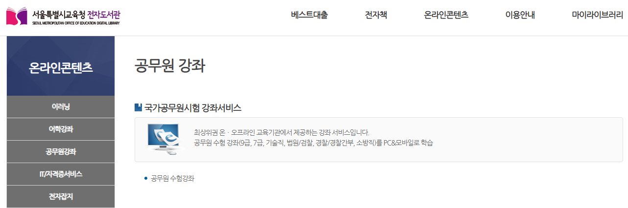 여러 공무원 강좌를 무료로 제공하고 있습니다.