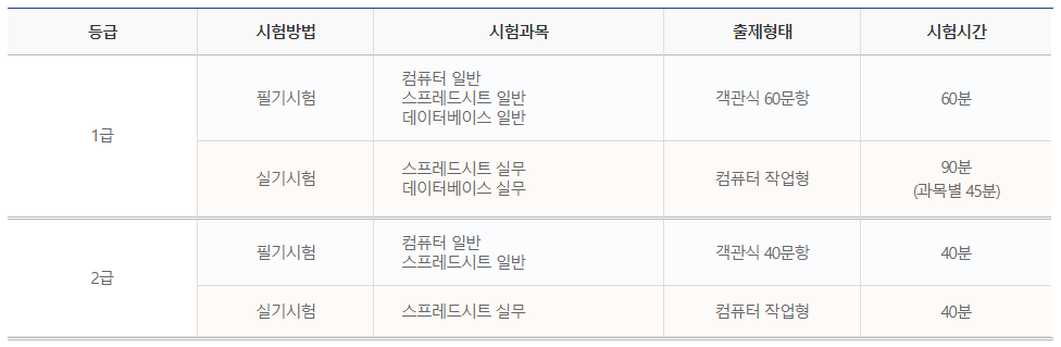 # 컴퓨터활용능력 1급 과목