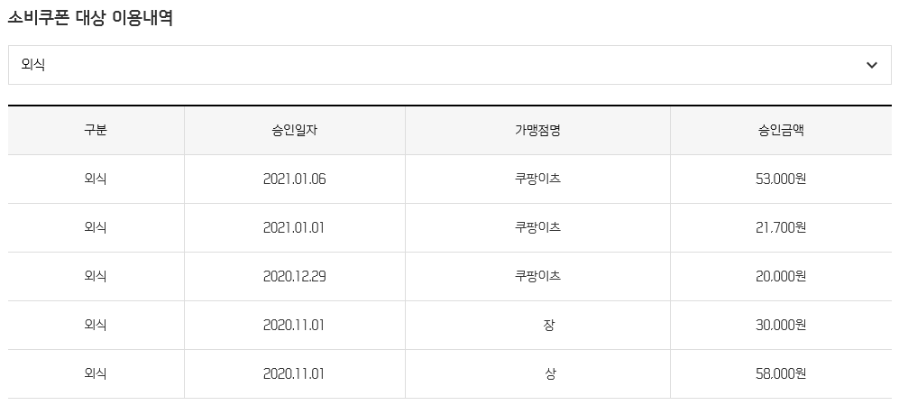 저는 배달의민족, 쿠팡이츠를 자주 사용하는데 최근 쿠팡이츠를 몇 번 시킨 적이 있어서 신한카드 외식쿠폰 내역을 확인해봤습니다.