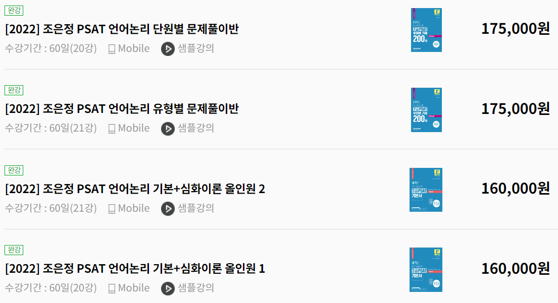 순서는 역시 입문강좌, 기본+심화이론 올인원, 문제풀이 순서로 들으면 될 것 같습니다. 해커스 PSAT에서 수강하면 강의당 13만 5천원~17만 5천원이 필요하지만 밑에서 소개한 방법으로는 수강료 없이 수강이 가능합니다.