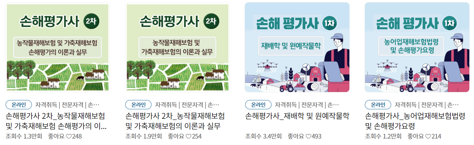 이상으로 2023년 손해평가사 자격시험 1차, 2차 이론 및 기출문제풀이를 무료로 수강할 수 있는 방법을 알아봤습니다. 손해평가사 자격증을 독학으로 공부하는 분들에게 큰 도움이 될 것 같은 내용이었습니다.