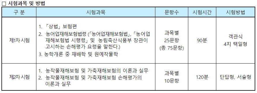 손해평가사 시험과목 및 방법