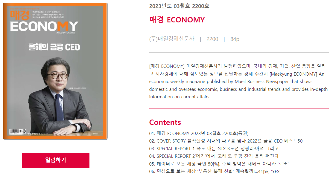 매경이코노미 최신호를 통해 어떤 내용을 다루고 있는지 간략이 소개해보겠습니다.
