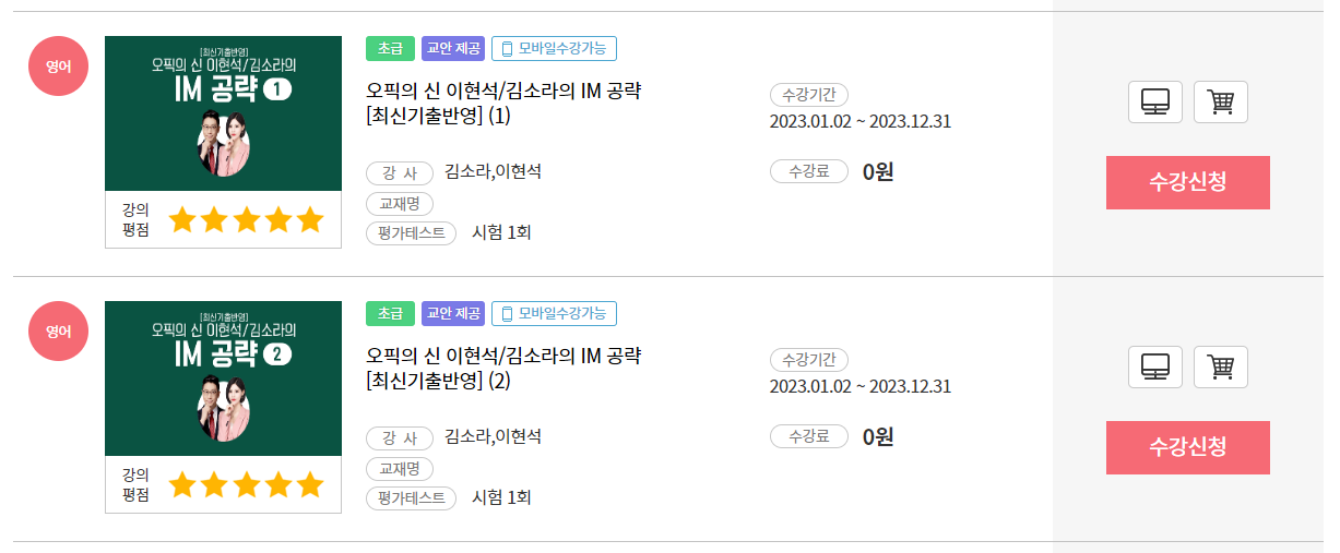 두 번째 추천할 오픽 무료 인강은 <오픽의 신 이현석/김소라의 IM 공략>입니다.