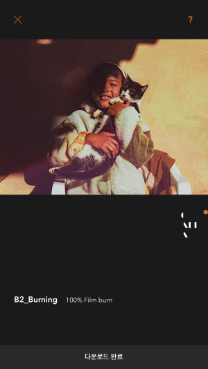 B2_Burning 필터는 <빛효과 있음. 인물사진에 어울리고 음식, 풍경에 빛효과는 안어울릴 수 있음. 어두운 곳 플래시 사진에 효과 좋음. 필름번, 가장자리, 불, 강렬함, 빈티지, 아날로그, 따뜻함> 등의 특징이 있습니다.