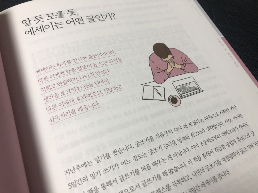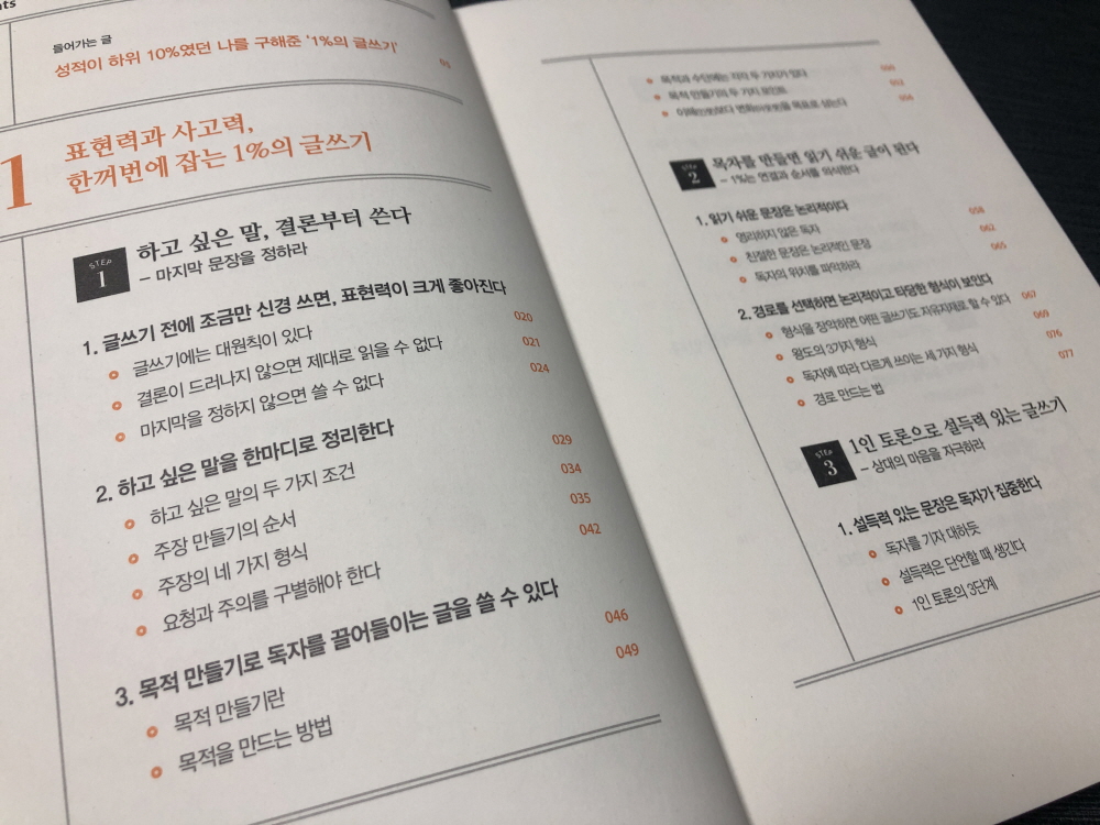 지난 달에 페이지가 적은 글쓰기 관련 책 ‘열 문장 쓰는 법’과 ‘한 줄도 진짜 못 쓰겠는데요’ 2권으로 독서에 탄력이 붙었다. 이번에는 조금 더 두꺼운 글쓰기 책을 골랐다. 책 표지에 ‘내 인생 발목 잡던 글쓰기에 날개를 달자. 답안지에서 SNS, 기획서까지 공부 고수의 눈길을 잡아끄는 글쓰기 비법’이라고 적혀있다. 내가 글쓰기에 관심이 있어서인지 아니면 글쓰기를 잘 쓰는 사람들이 적은 글이기 때문인지 글쓰기 책에 적힌 홍보문구들은 공감이 잘 된다.